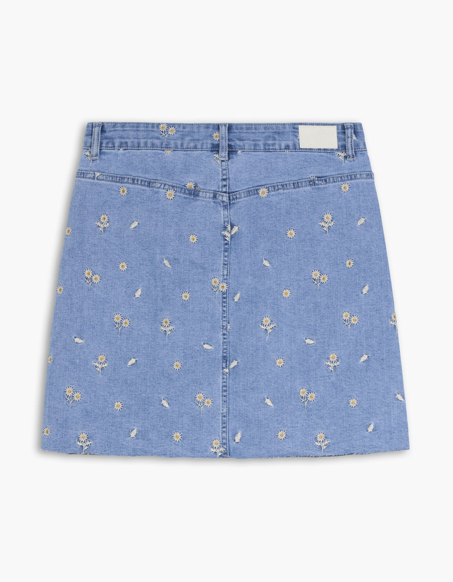 Not only is it a pleasure to the eye, the SIMONE skirt is a pleasure to wear. This floral embroidered denim skirt will have you diving right into the hotter season with a bohemian trendy look!