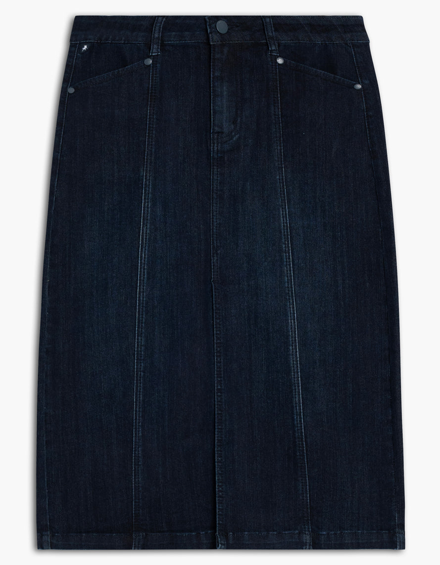 A versatile and flattering skirt made out of a stretch deep indigo denim fabric that has superior shape retention. This popular denim skirtwill be a key item to your wardrobe!