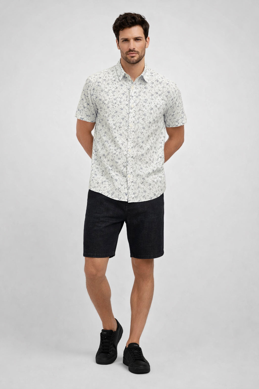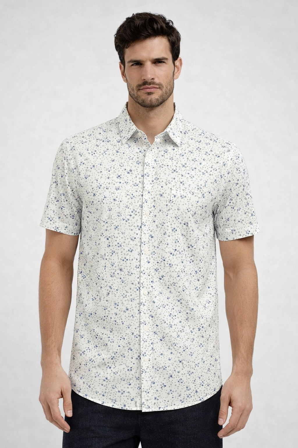 Light, ultra-stretchy fabric combines with an all-over floral print for an eye-catching look. This shirt pairs perfectly with a pair of jeans and sneakers.